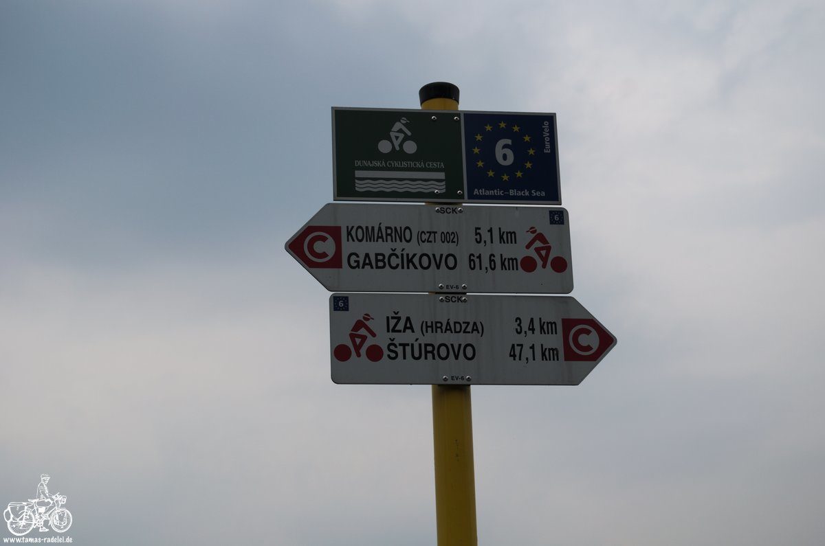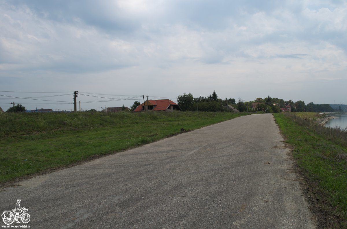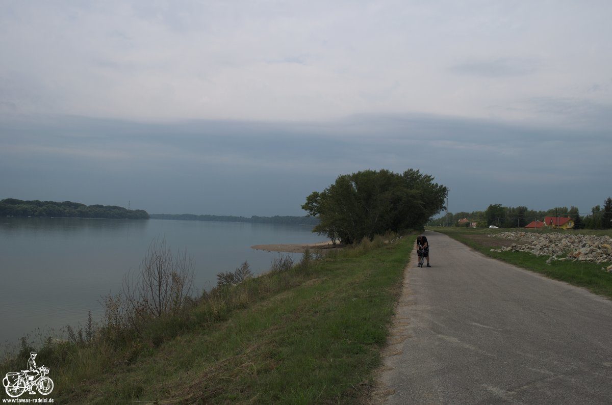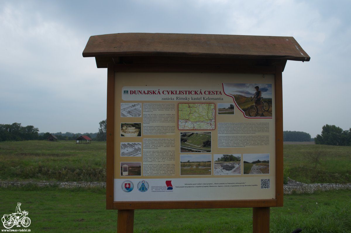 Vor allem auch wegen des super asphaltierten Dammweges (made / payed by EU) neben der Donau. Auch hier hatten wir kaum weitere Radtouristen getroffen. An einer Ruine eines alten römischen Kastells trafen wir einen deutschen Radtouristen, mit dem wir kurz die Erfahrungen bzgl. Wegverlauf austauschten und fuhren dann weiter. In Ortschaften ging es teilweise wieder auf die Straße bzw. der Radweg verlief entlang beruhigter Uferstraßen. Ungefähr ¾ des Stückes auf der slowakischen Seite sind wir auch direkt auf dem ausgewiesenen Radweg geblieben.
