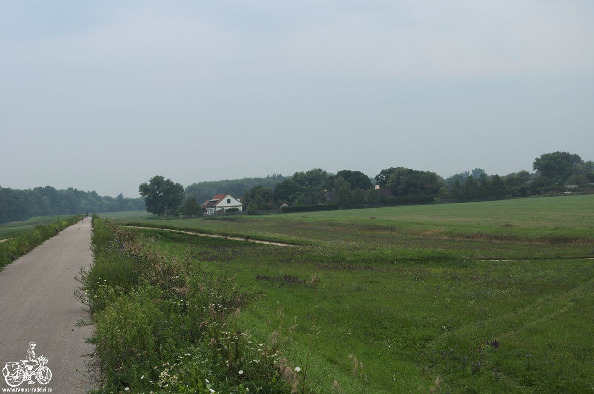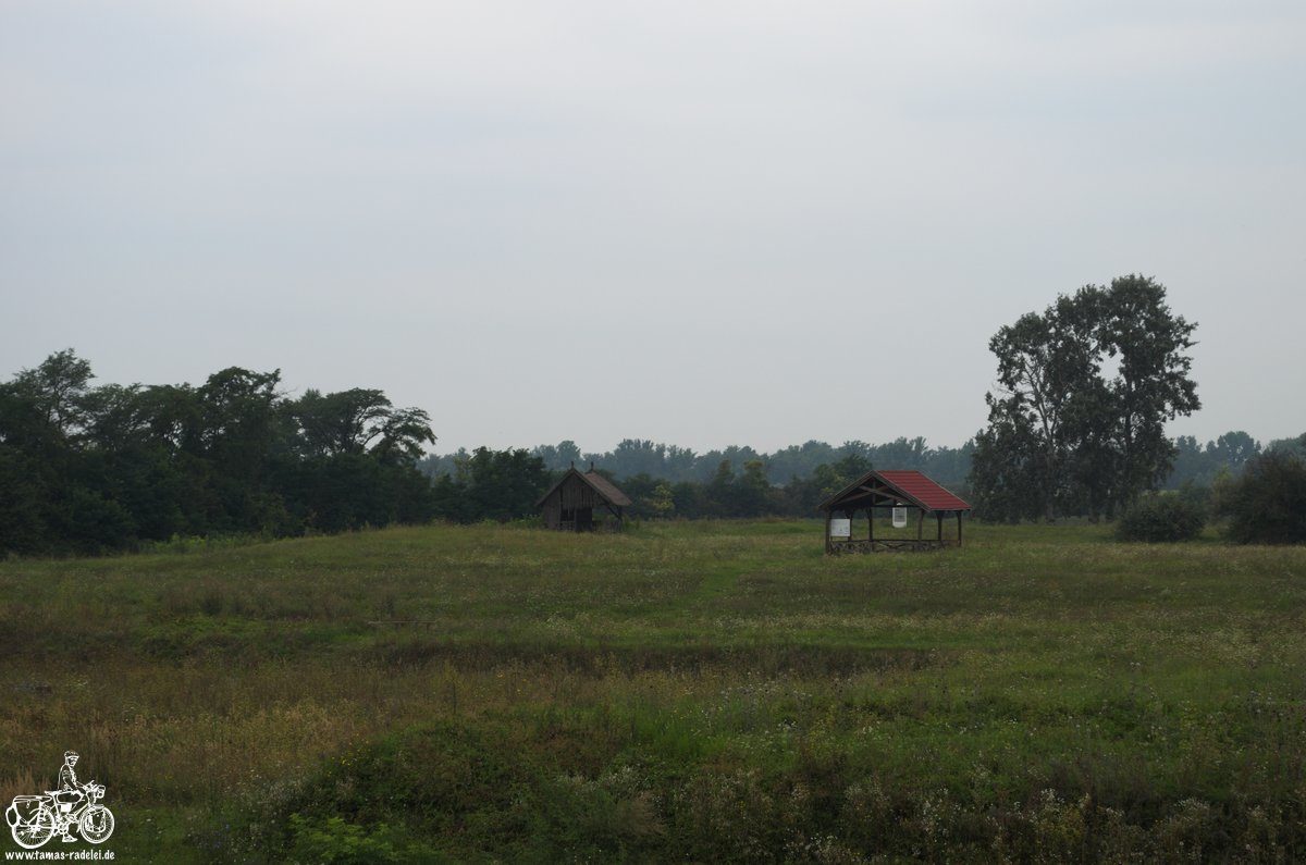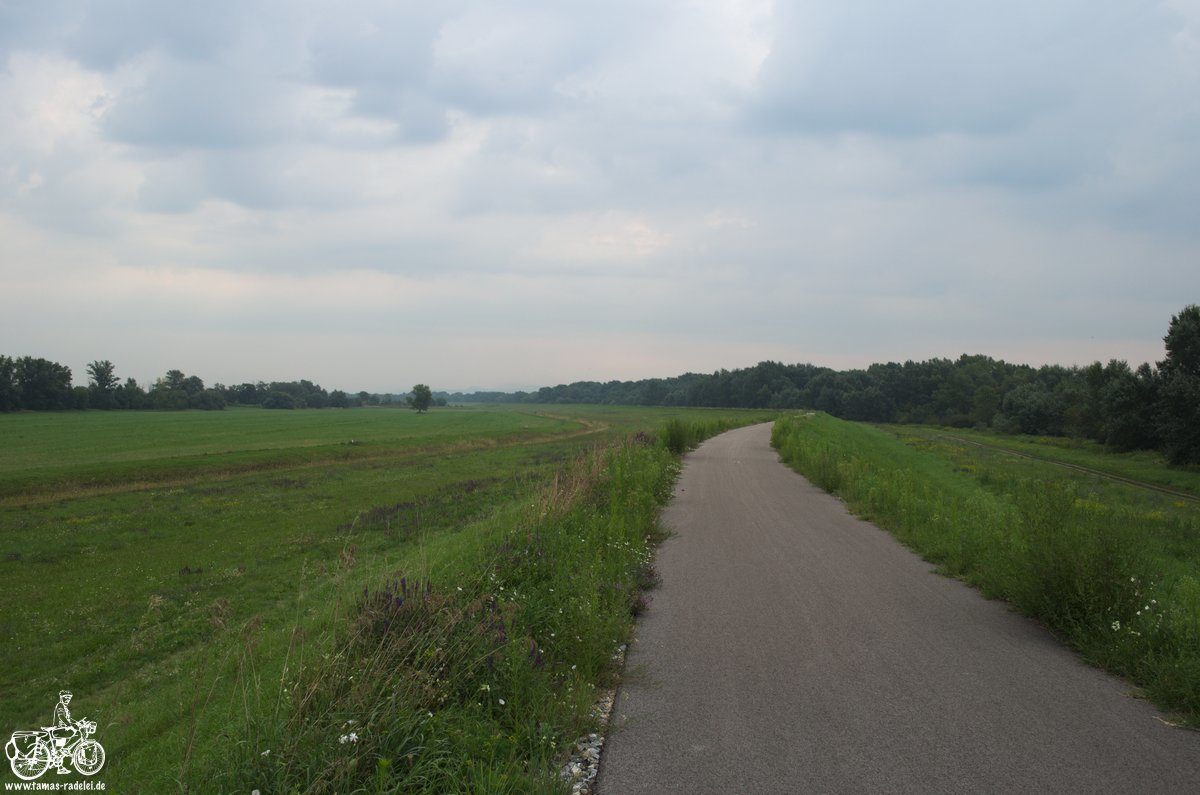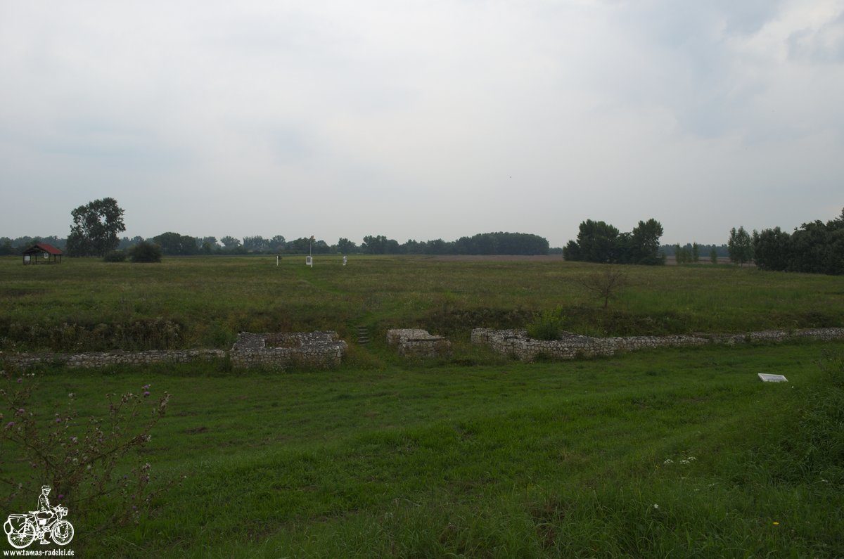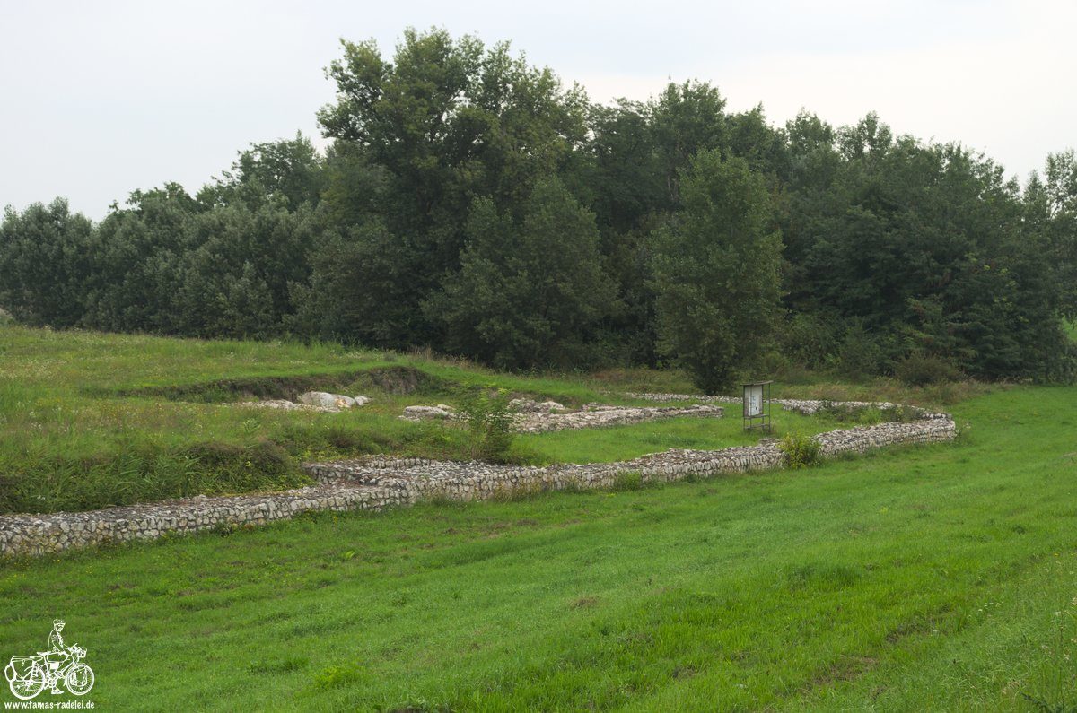 Vor allem auch wegen des super asphaltierten Dammweges (made / payed by EU) neben der Donau. Auch hier hatten wir kaum weitere Radtouristen getroffen. An einer Ruine eines alten römischen Kastells trafen wir einen deutschen Radtouristen, mit dem wir kurz die Erfahrungen bzgl. Wegverlauf austauschten und fuhren dann weiter. In Ortschaften ging es teilweise wieder auf die Straße bzw. der Radweg verlief entlang beruhigter Uferstraßen. Ungefähr ¾ des Stückes auf der slowakischen Seite sind wir auch direkt auf dem ausgewiesenen Radweg geblieben.