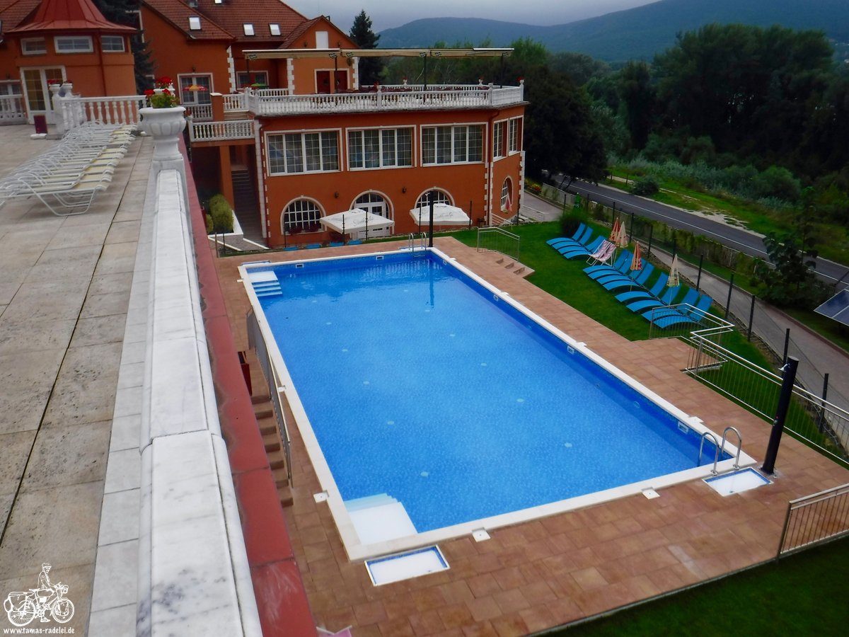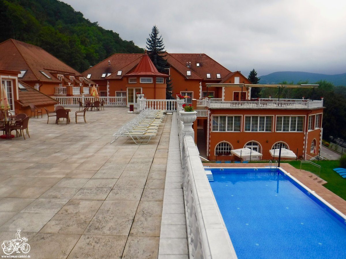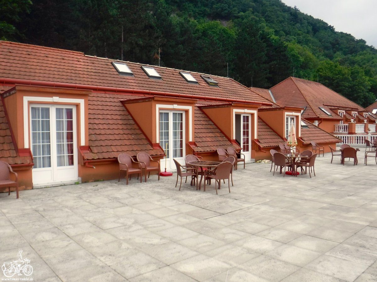 Aber das Wetter tat sein übriges und ich hatte dann einen anderen Campingplatz im Kopf ausgewählt, den wir erreichen sollten, bevor es zu plätschern beginnt. Denn der Wind zog kräftig an und Didi hatte es in der Nase, dass es jeden Moment losgehen kann. Also ging es etwas zügig den Radweg entlang Richtung Donaufähre. Doch vorher fanden wir an der Straße ein 4*-Hotel, dass wir einfach mal ansteuerten, weil das die nächste Unterkunftsmöglichkeit zu sein schien, um dem Regen zu entkommen. Ich also rein und mal nach dem Preis gefragt. Mit Didi beratschlagt und für gut befunden.