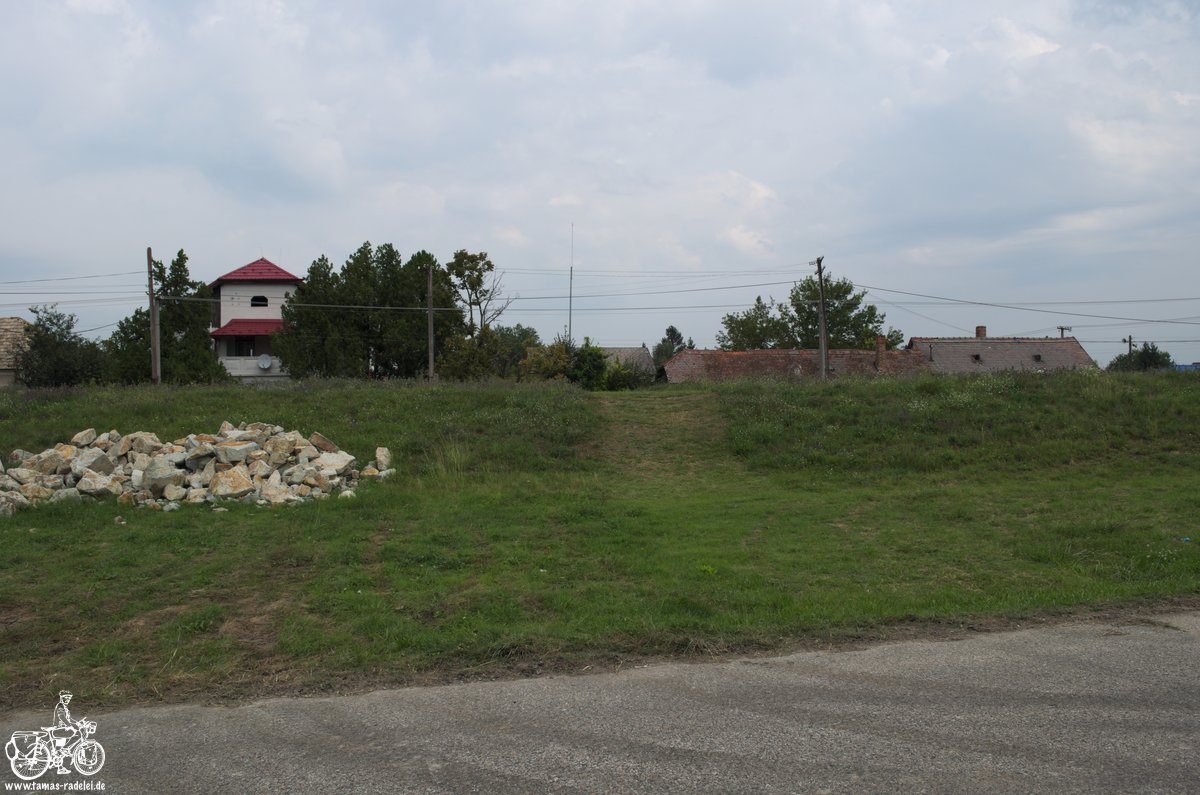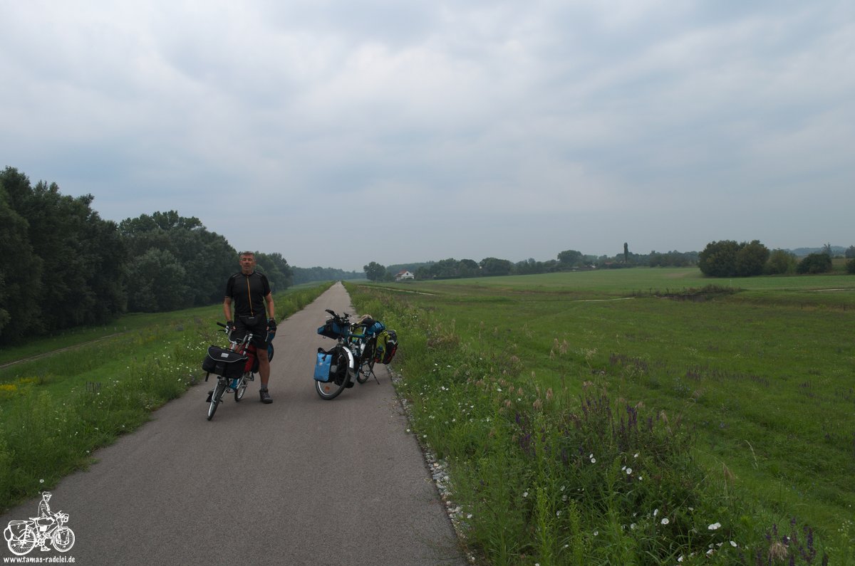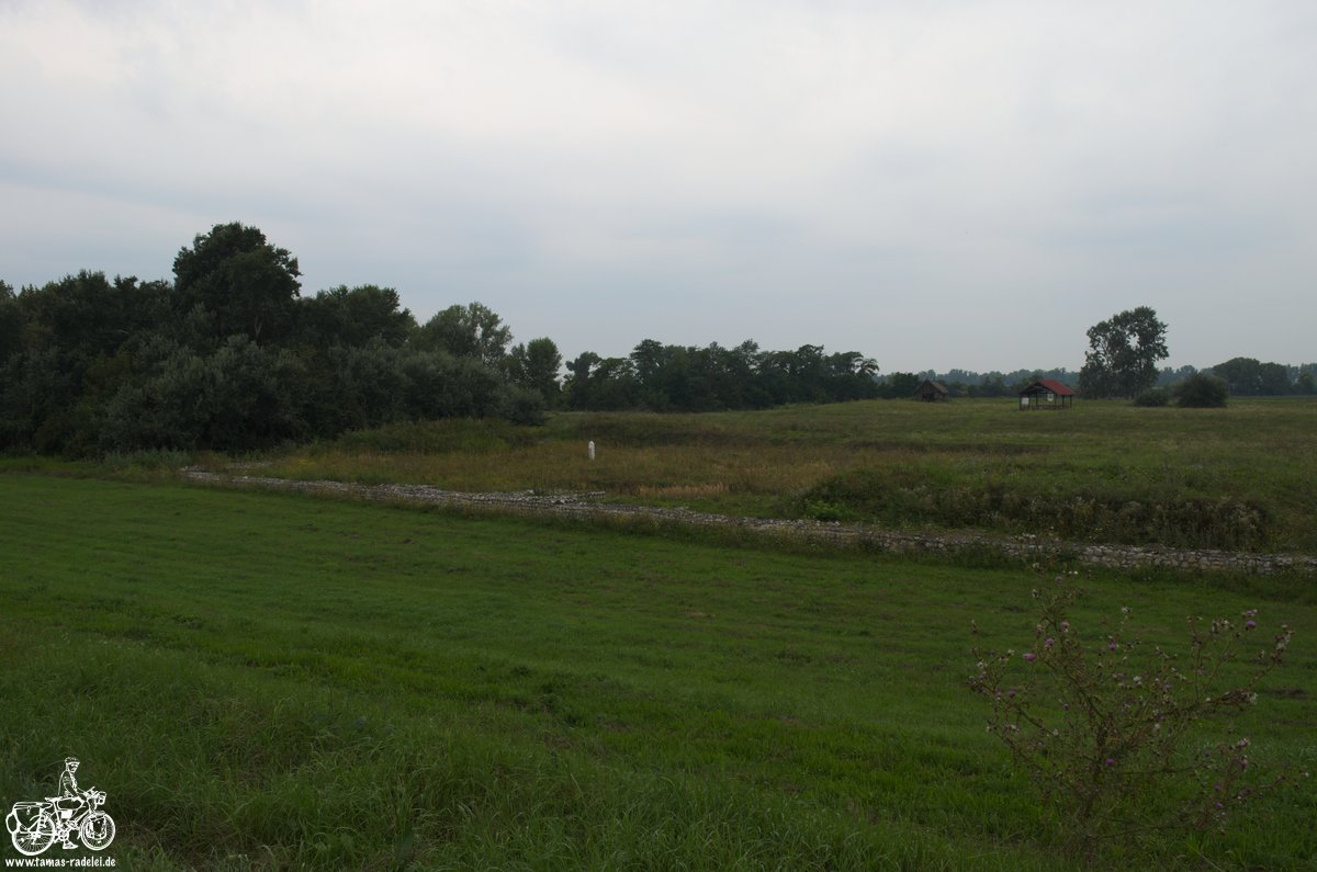 Vor allem auch wegen des super asphaltierten Dammweges (made / payed by EU) neben der Donau. Auch hier hatten wir kaum weitere Radtouristen getroffen. An einer Ruine eines alten römischen Kastells trafen wir einen deutschen Radtouristen, mit dem wir kurz die Erfahrungen bzgl. Wegverlauf austauschten und fuhren dann weiter. In Ortschaften ging es teilweise wieder auf die Straße bzw. der Radweg verlief entlang beruhigter Uferstraßen. Ungefähr ¾ des Stückes auf der slowakischen Seite sind wir auch direkt auf dem ausgewiesenen Radweg geblieben.